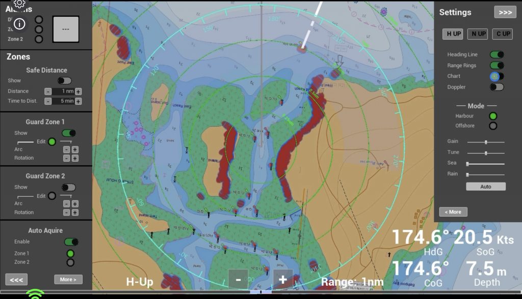- Ability to adjust Gain, Tune, Sea Clutter, Rain Clutter and to select pre-programmed modes – harbour and offshore.